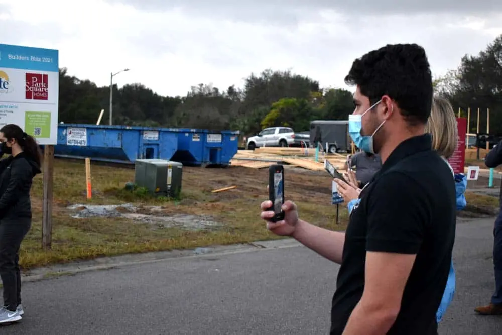 7 a.m. on Day 1: Habitat for Humanity at UCF President Alejandro Mendez-Ruiz takes a video of the opening ceremony.