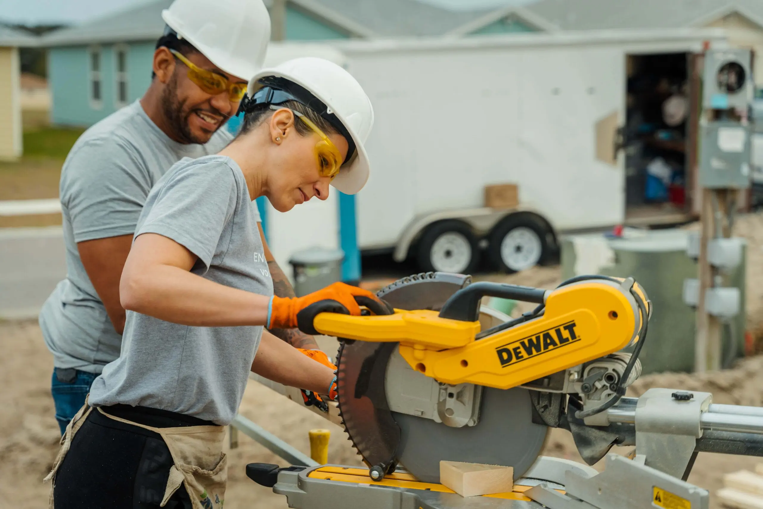 Construction volunteers typically help with one or more of the following job tasks: framing walls, installing siding, hanging drywall, caulking, priming, painting, landscaping, and so much more. You will find out your task prior to your build day. Tasks may change due to the ever-evolving nature of the construction schedule. You will receive onsite training for all tasks.