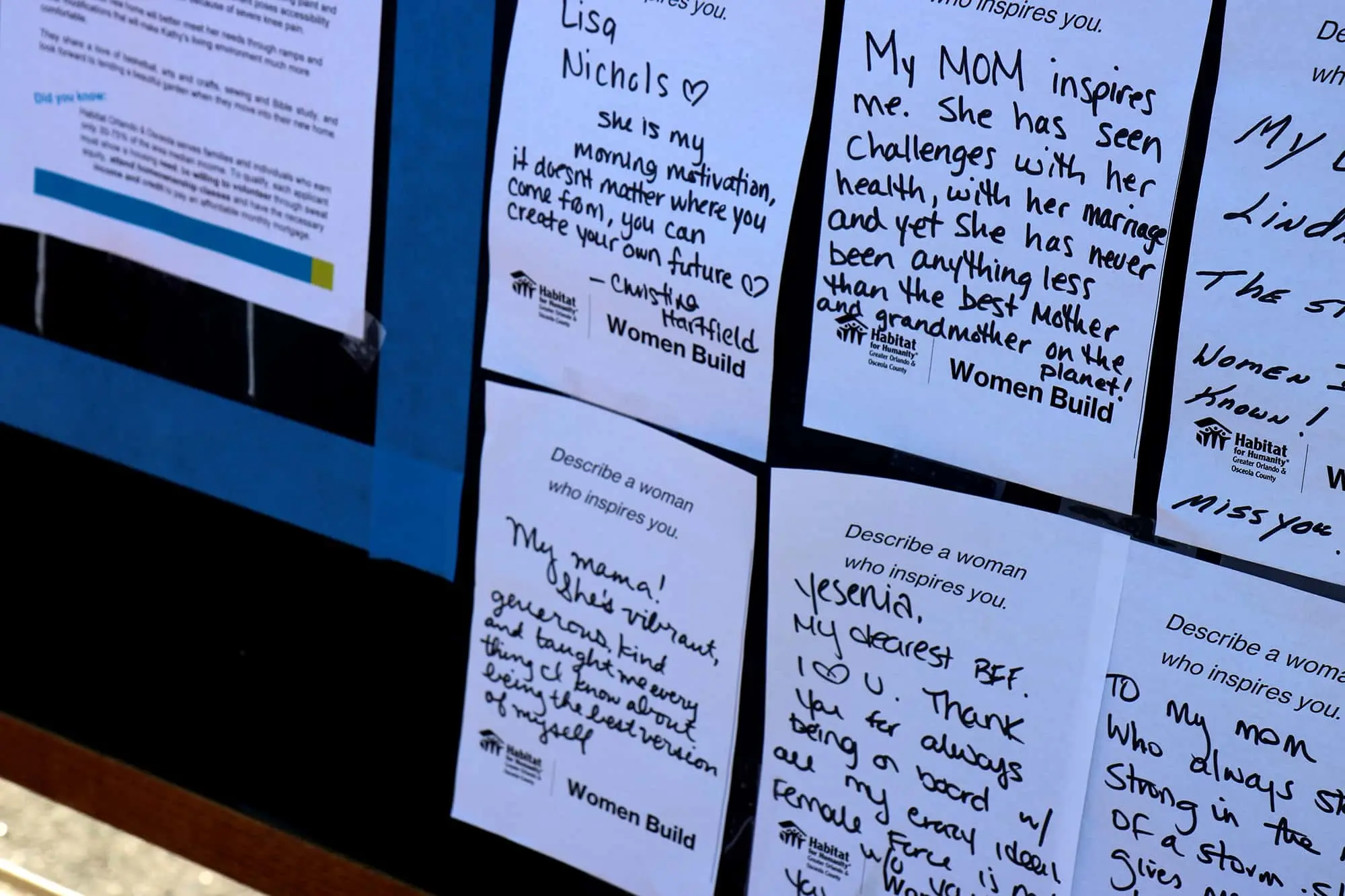 This May, nearly one hundred women spent their Friday and Saturday morning on the build site in our newest community in Silver Pines Pointe. They installed siding, painted, completed caulking tasks, and more, learning new skills along the way. During the Mother’s Day weekend event, volunteers recognized and wrote about the strong, inspiring women they admire on a display onsite.
