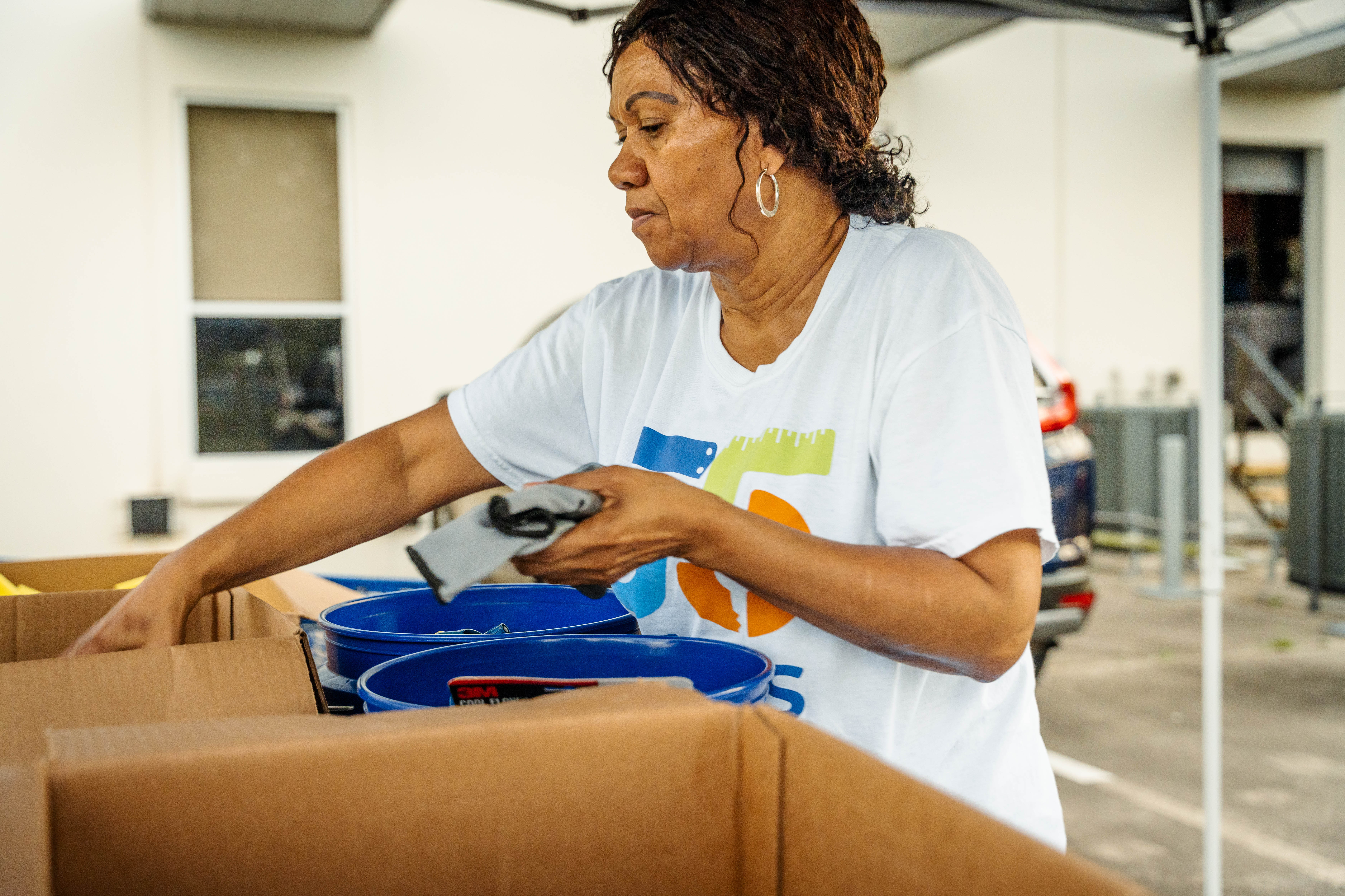 Future homeowners assemble buckets for homeowners